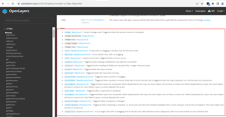 OpenLayer地图实例Map API:官网ol.Map,下面是地图Map实例可以通过监听的事件。