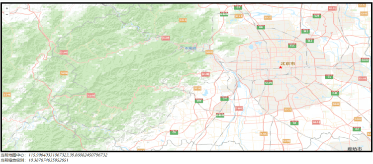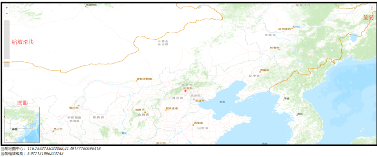 </html>鼠标移动结束后,地图左下角可以查看当前的经纬度和缩放比例,下面看看效果!