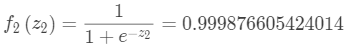 接下来是第二层隐藏层的计算,首先我们计算第二层的第一个神经元的输入z₄和输出f₄(z₄):