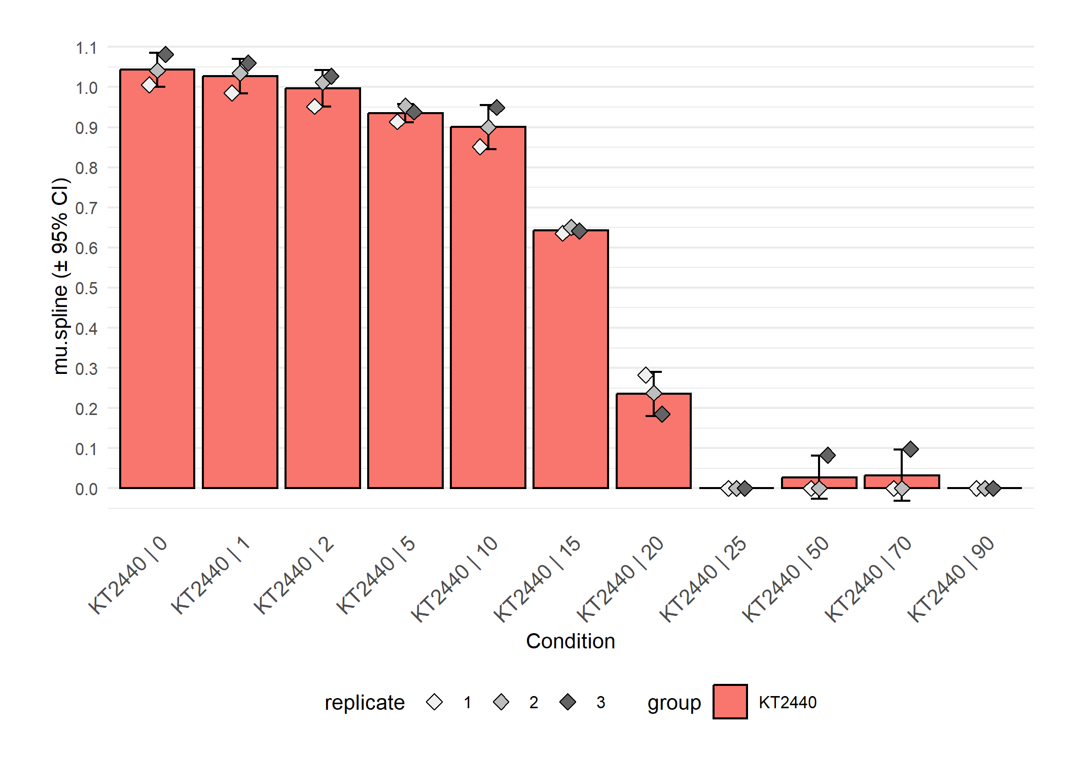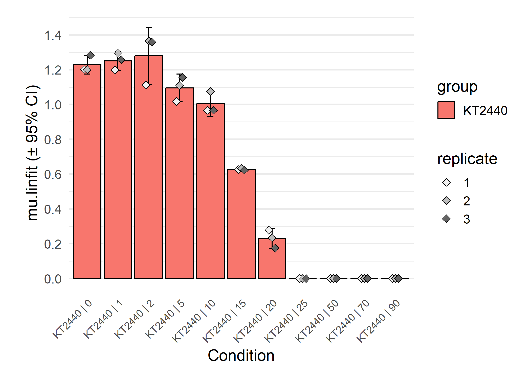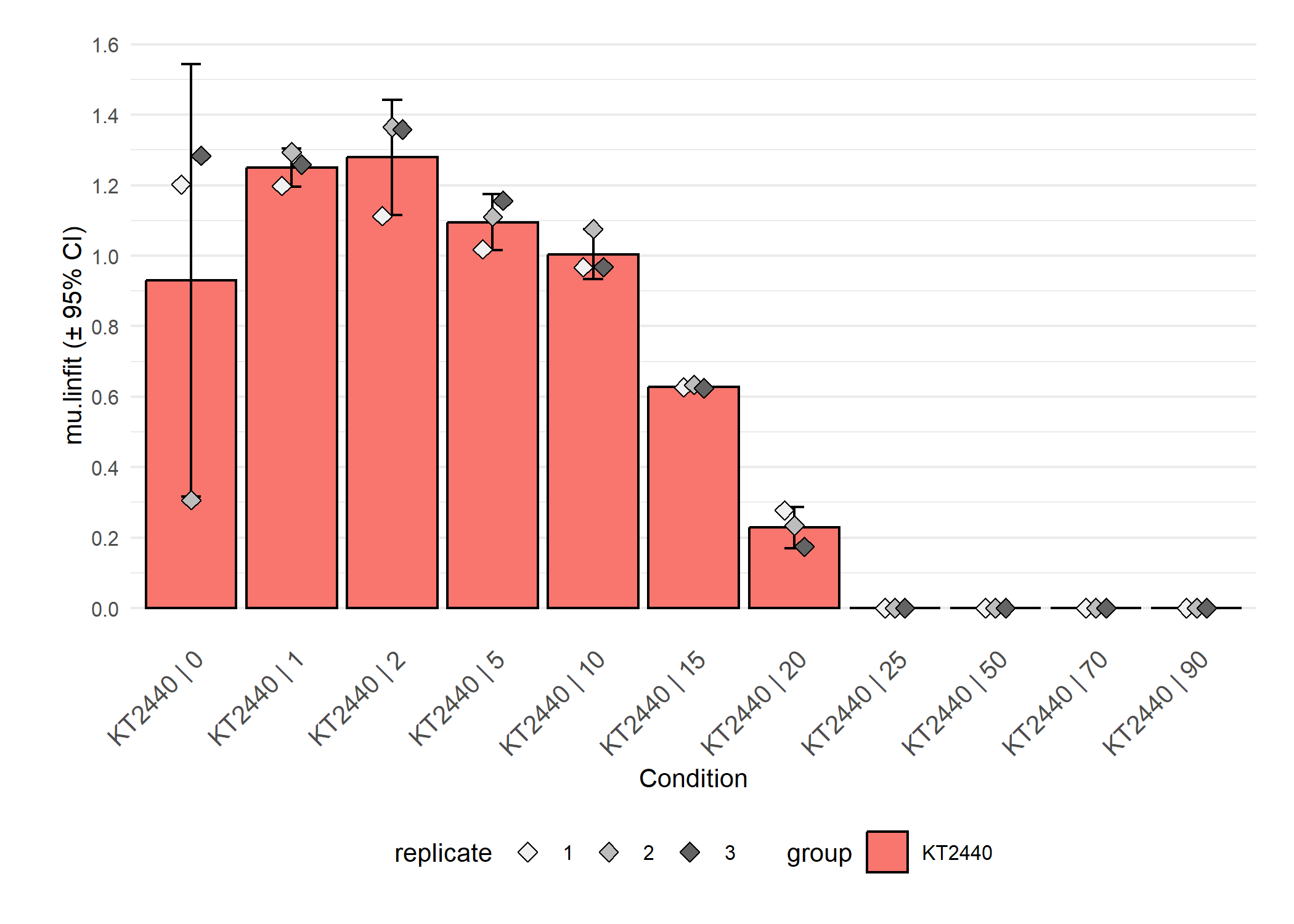 dose-response analysis since ‘mu.linfit’ was used as response parameter