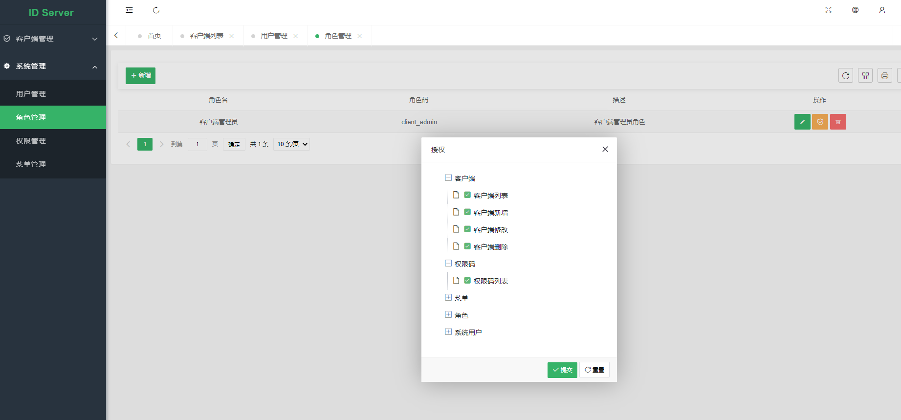 - 可动态调整管理员的用户角色,对授权服务器进行按钮功能级别的权限控制。