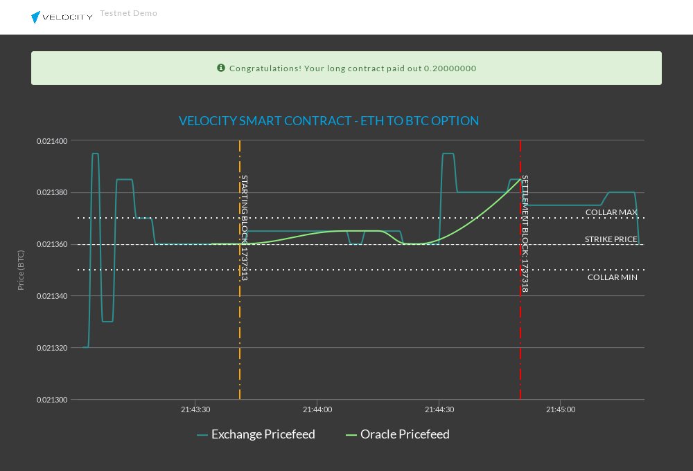 To begin with, Velocity will start with an implementation of a simple collared option contract. In the future, we plan to add a variety of derivatives based on market dynamics.