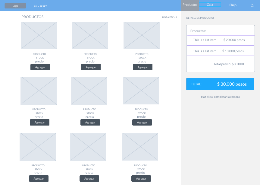 - Interface de venta de productos