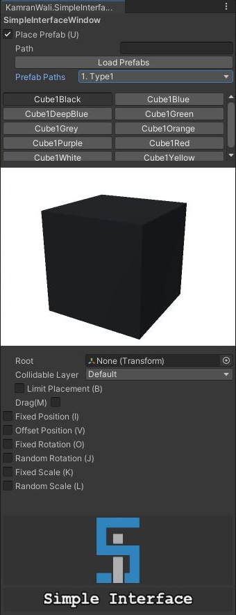 This is a simple Unity3D interface that helps to put prefabs easily into the editor.
