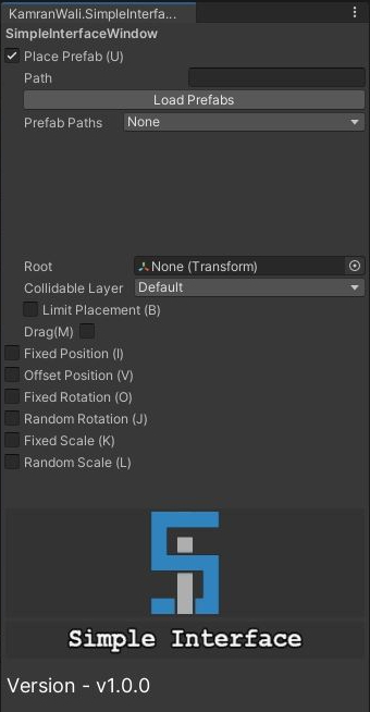 You can enable/disable Place Prefab by pressing the hotkey U. It is recommended to disable Place Prefab when not working with Simple Interface for avoiding any unnecessary prefab placement.