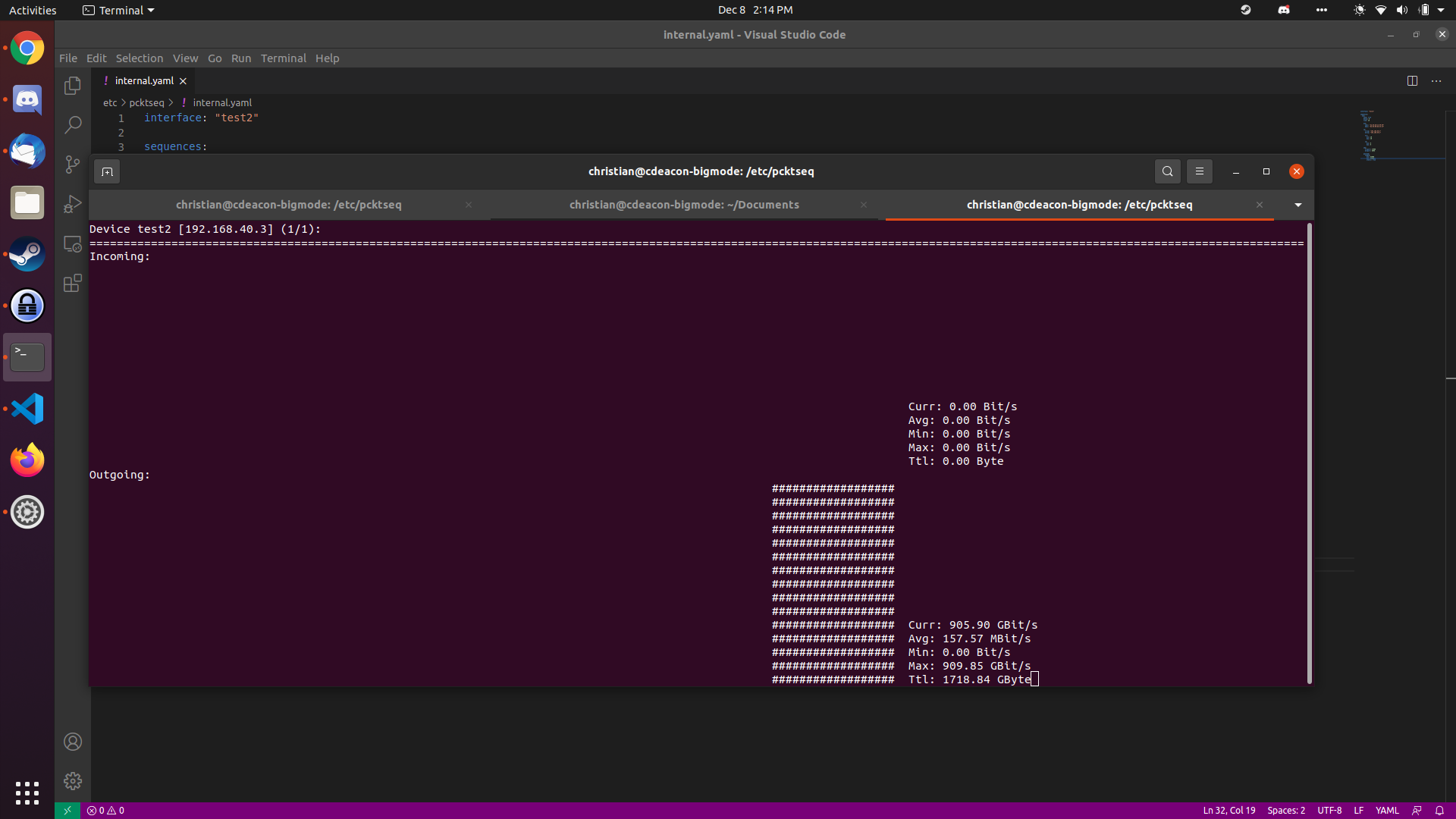 I was able to generate ~905 gbps between two virtual interfaces on my gaming laptop using the tests/simple_udp_flood.yaml config. As expected, this didn't use the laptop's NIC, but it shows how much the CPU, RAM, and NVMe can push out.