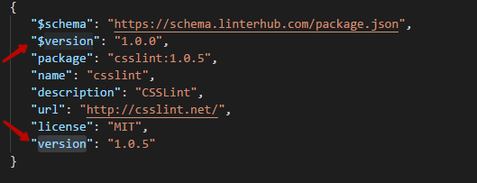 The `package.json` schema have 2 version properties in root lvl: `$version` and `version` I presuppose it's can mislead users. Example:  Please propose better name for it or how to fix it.
