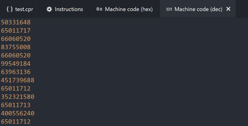 View > Machine code (dec) tab | Toggle machine code (dec) tab |