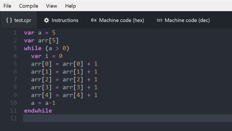 The compiler also supports while statements.