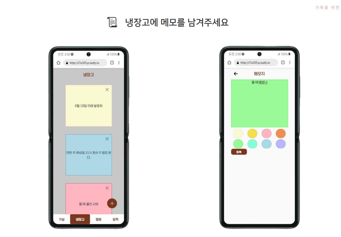 - 냉장고는 누구나 읽고 삭제할 수 있는 메모를 통해 소통할 수 있는 공간입니다.