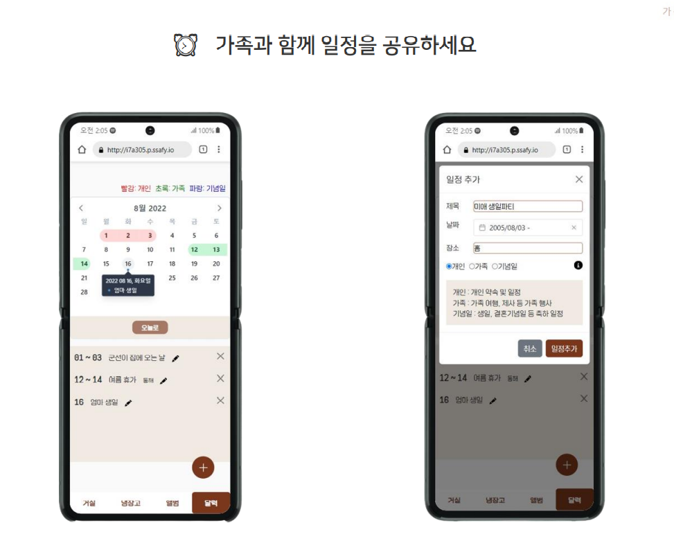 - 달력은 가족들의 일정을 함께 볼 수 있는 공간입니다.