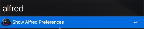 使用[Option+空格]调出Alfred,输入alfred打开Alfred Preferences: