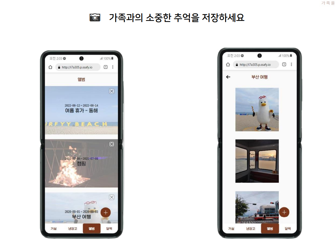 - 앨범은 가족들의 사진을 정리해서 보관할 수 있는 공간입니다.