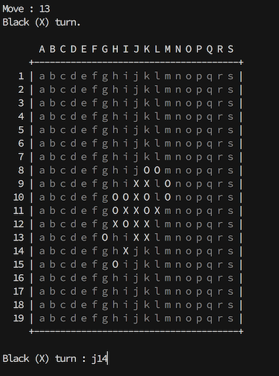 ("Move",1,0,4) # White at A5 (0,4)