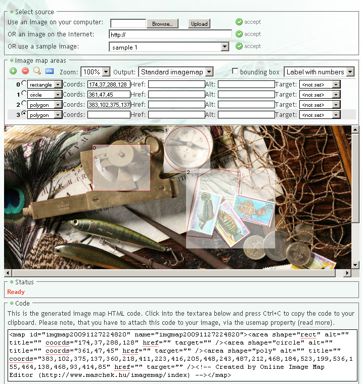 With the imagemap editor you can easily draw ALL the standard image map shapes (rectangle, circle, polygon), and you can have full control over the generated HTML code as well.
